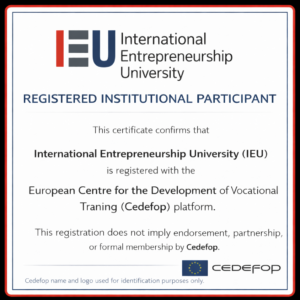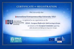 International Entrepreneurship University (IEU) is committed to transparent, high-quality education aligned with European standards. While external EQAR review is planned as part of its quality roadmap, IEU maintains strong academic oversight and is registered on EPALE, the European Commission’s platform supporting cooperation and excellence in adult learning.